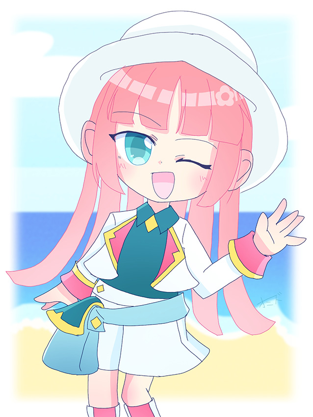 海でアルルが水でっぽうで遊んでいるところをかきました!