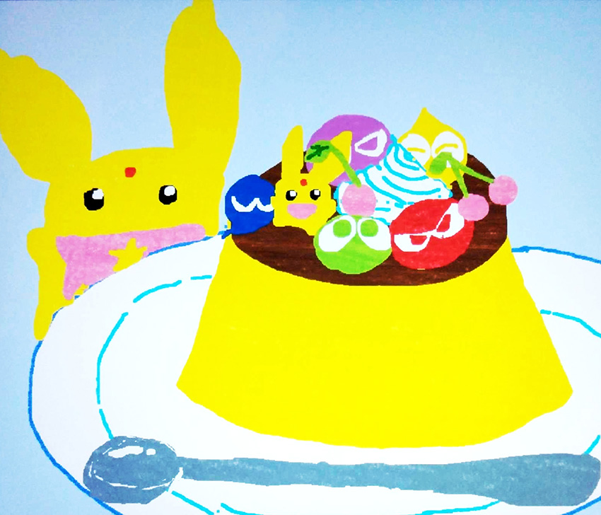 ぷよぷよでプリンをかわいくカラフルにかざりました。