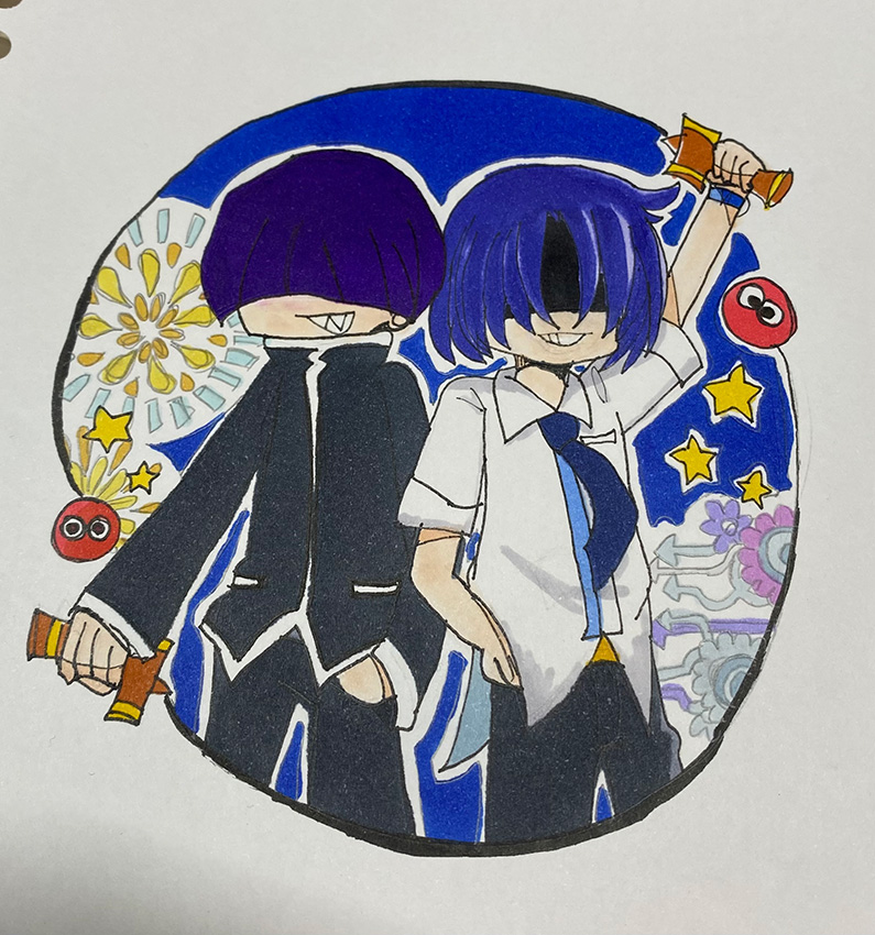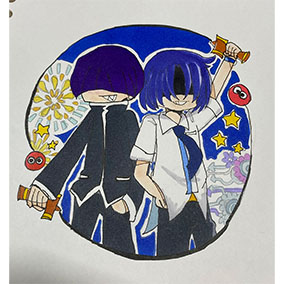 ぷよぷよのキャラクターがすきすぎて困っています。もちろんのことながらまぐろくんの7の学ラン姿も夏服姿もだいすきです。途中いろいろめげながらも頑張って描きました。まぐろくんだいすき!