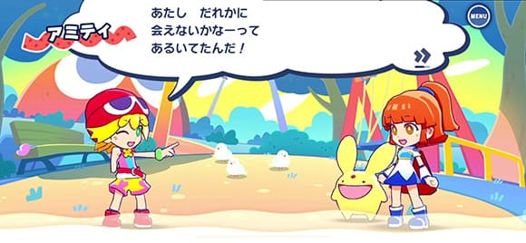 夢の中で誰かに語りかけられて目覚めたアミティ。不思議に思いながらもいつも通り散歩に出かけて、道端で出会ったアルルやカーバンクルと一緒に、ぷよ勝負を楽しんでいた。