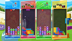 「VS(ブイエス)」「スワップ」「ぷよテトミックス」「ビッグバン」「パーティー」といった「ぷよぷよ」と「テトリス」で対戦する5つのルールや、ぷよぷよの「とことんぷよぷよ」「とことんフィーバー」「とことんちびぷよ」、テトリスの「40ライン」「マラソン」「ウルトラ」といった1人で遊ぶとことんモードを収録。最大4人での対戦プレイはもちろん、インターネットで全国のプレイヤーとの通信対戦OK。もちろん、はじめての人でも安心の「レッスン」モードも収録。