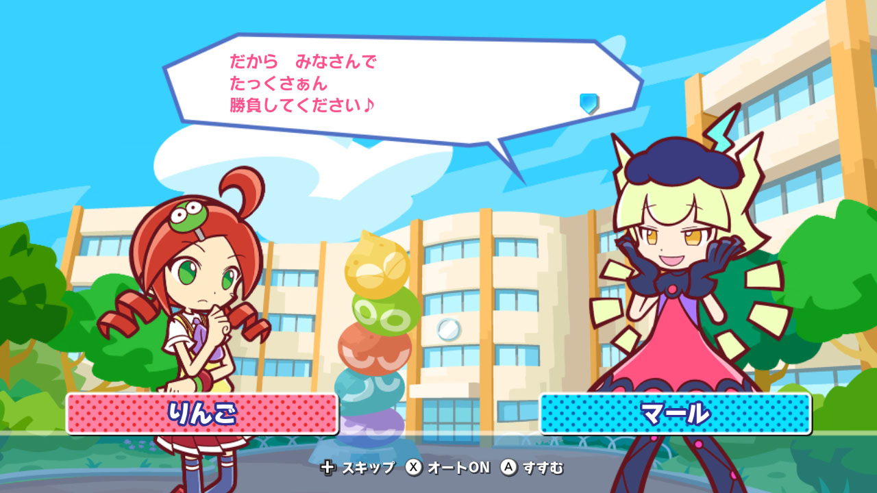 どこかに黒幕がいるというエックスの言葉を受けて、その黒幕を探すりんごとティ。すずらん中学の同級生まぐろや先輩のりすくませんぱい、ぷよ勝負をしていたら飛ばされてきたアルル、アミティたちと出会いながら仲間を増やしつつ、今回の黒幕と思わしき少女(マール)にたどり着く二人だが・・・?