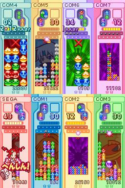 新ルール「だいへんしん」では、ぷよやキャラクターが大きく小さく変身して、最大47連鎖が可能。 おなじみの「ぷよぷよ」「ぷよぷよ通」「ぷよぷよフィーバー」「なぞぷよ」ルールも遊べて、対戦が熱い。 全19名の新旧キャラクターが登場。