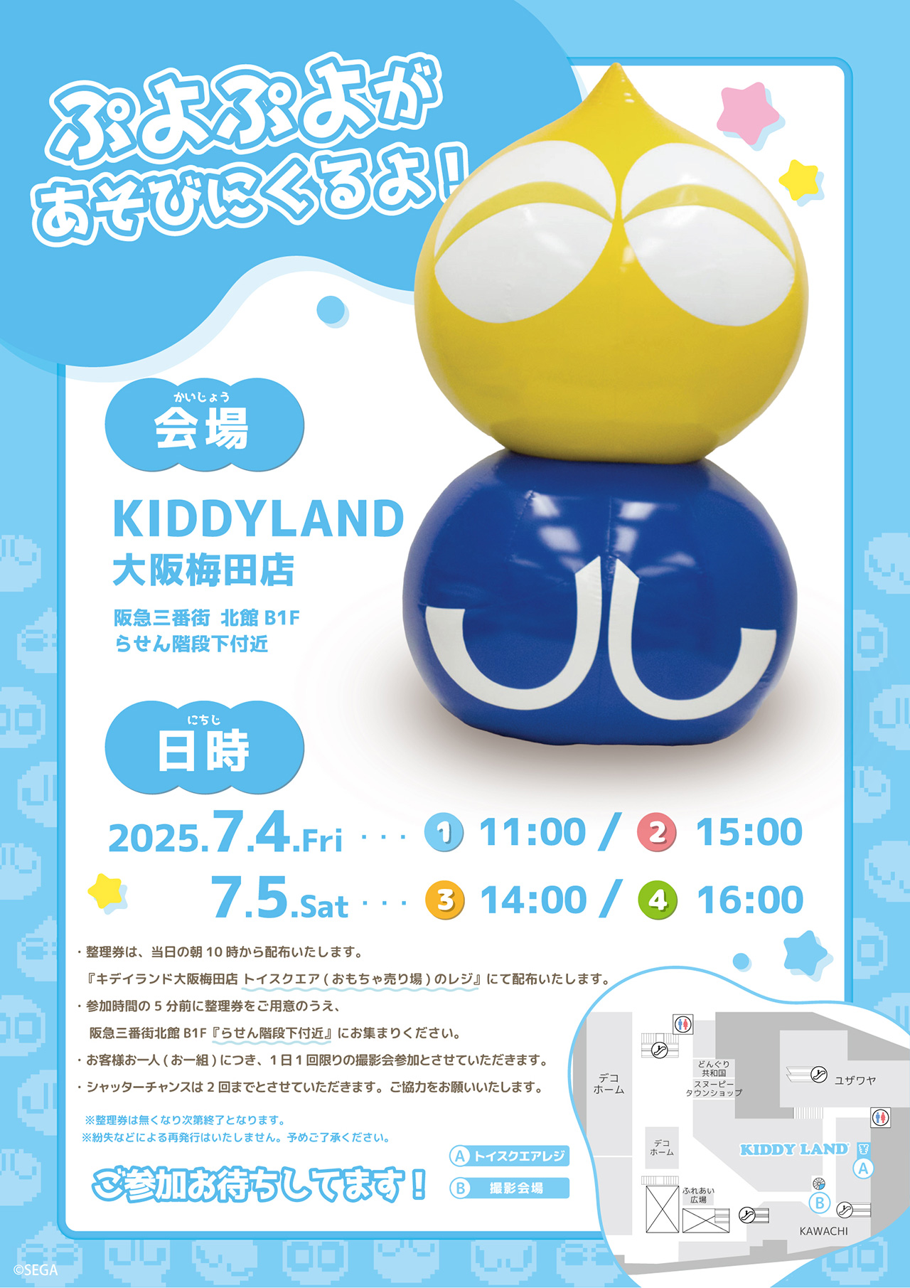 2025年7月4日(金)より、キデイランド大阪梅田店にて「ぷよぷよPOP UP SHOP」の開催が決定しました!