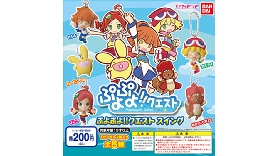スマートフォンアプリ(iOS/Android)『ぷよぷよ!!クエスト』から、ボールチェーン付きのスイングマスコットが登場!全国のガシャポン自販機にて4月下旬より発売中です。