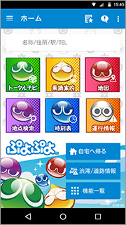 iOS/Android向けアプリ「NAVITIME」に、「ぷよぷよ」の着せ替え有料アイテムが登場!着せ替え機能は、「NAVITIME」のメニューボタン・ホーム画面・ナビゲーション中のキャラクターや、音声など「NAVITIME」の一部デザインを、ユーザーの好みに合わせて変更できる機能となっています。
