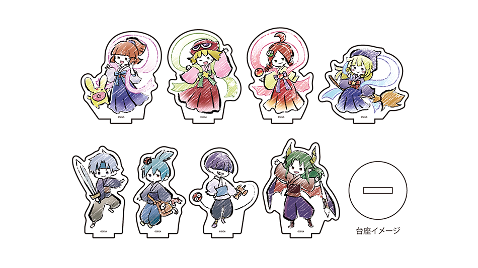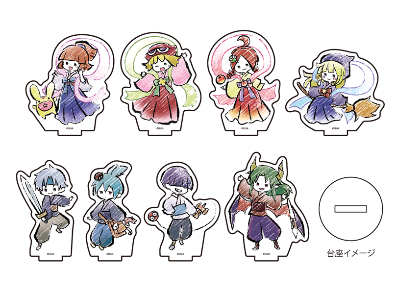 「ぷよぷよ」のキャラクターたちが織姫と彦星の衣装を着たグラフアートで登場!アルル、アミティ、りんご、ウィッチ、シェゾ、シグ、まぐろ、サタンの全8種。ダイカットで加工されたアクリル製のスタンド型アイテムです。