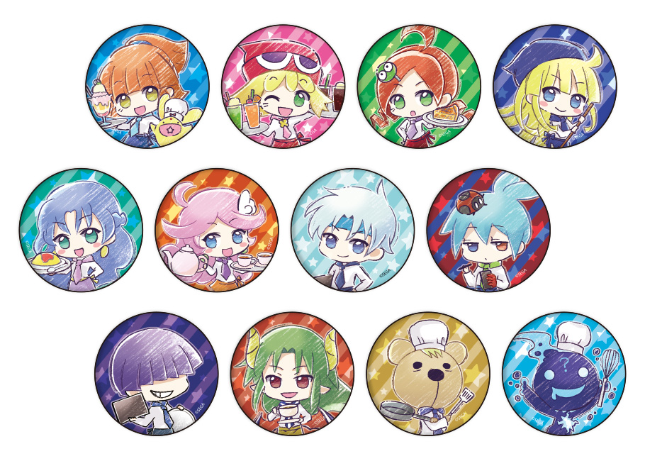 「ぷよぷよ」のキャラクターたちがカフェ店員の格好をしたグラフアートで登場!65mmと少し大きめサイズの缶バッジです。