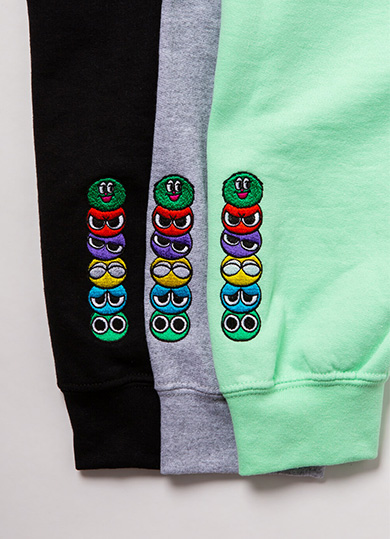 「MAGICAL MOSH MISFITS (MxMxM)」とぷよぷよの夢のコラボレーション第2弾が実現!6種類のカラフルなぷよたちがMxMxMのどくろロゴにどろどろ~!すべてをまじかるらしく描き下ろしした遊び心&かわいさ満点なパーカです。更に左の袖口には、MxMxMの「かわいいちゃん」と、ぷよたちが積み上がった夢の合体ワンポイント刺繍入りです!