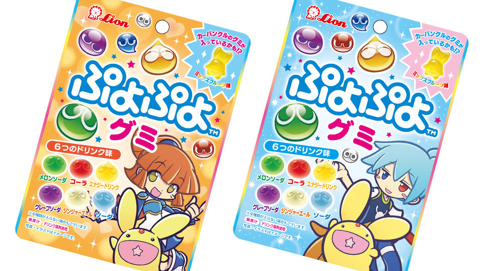 4月5日より「ぷよぷよグミ」が発売されます。 さまざまな色や形の「ぷよぷよ」がそれぞれ6種類の味となって、ランダムに入っている商品です。メロンソーダ、コーラ、エナジードリンク、グレープソーダ、ジンジャーエール、ソーダのさわやかなドリンクフレーバーが勢ぞろい!さらに、レア型のカーバンクルグミ(ミックスフルーツ味)が入っていたらラッキー★パッケージは「アルル」と「シグ」の2種類あります!ぜひ、お買い求めください!