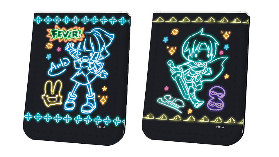 らくがきタッチのグラフアートイラストで描き起こされたアルルたちが「ネオンサインアート」になって登場!!ネオン調のポップなカラーに気持ちが上がること間違いなし!デザインはアルル&カーバンクルとシェゾの2種をご用意。大小サイズ違いのフセンに、ポーチやペンケースに収納しやすいコンパクトなレザータイプのカバーが付いたアイテムです。