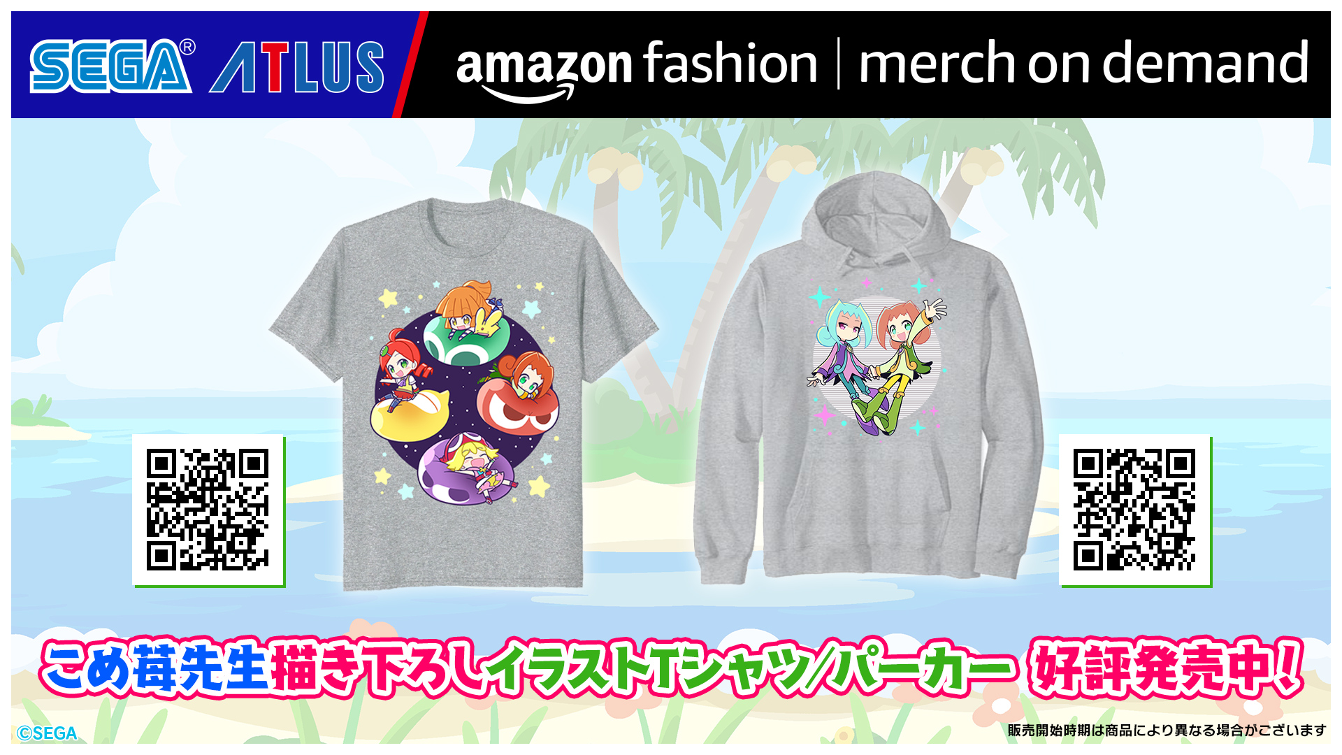 Amazon Merch on Demandセガ/アトラス公式ページにコミカライズ作品などをご担当されたこめ苺先生の描き下ろしイラストを使用したTシャツとパーカーが新登場!