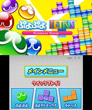 ダウンロード完了後、自動で更新が行われます。 - 『ぷよぷよテトリス』を起動して、バージョンが「Ver. 1.1」であることをご確認ください。タイトル画面が下図のように表示されていれば更新完了です。