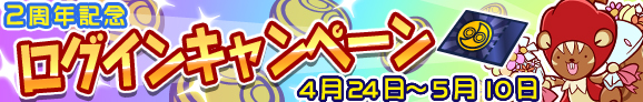 2周年&1300万ダウンロード突破を記念して、キャンペーン期間中(2014年4月24日(金)4:00~5月10日(日))に「お祝いパプリス」、「ぷよP」、「コイン」がもらえるログインキャンペーンを実施!