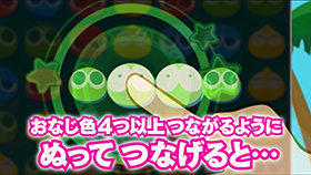 また、配信に先駆けて『ぷよぷよ!!タッチ』公式サイトにて、魅力をたっぷりつめこんだプロモーションムービーを公開!プロモーションムービーでは、本ゲームの特徴である新しい遊び方「ぬりけし」や、はなれたところにいるぷよや敵などを消すことができる「やじるし」の作り方についてなど、『ぷよぷよ!!タッチ』を楽しむための基本の遊び方を、分かりやすく紹介しています。