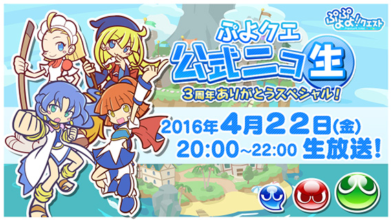 「ぷよクエ公式ニコ生~3周年ありがとうスペシャル~」配信決定!