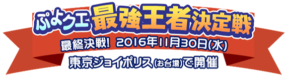 2016年11月30日(水)、東京ジョイポリスにて、スマートフォンアプリ『ぷよぷよ!!クエスト』のリアルタイム対戦イベント「ぷよクエ最強王者決定戦」を開催いたします。