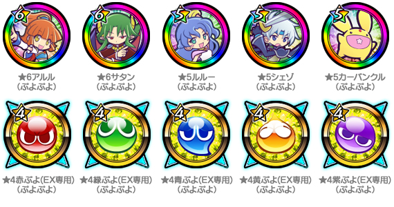 期間中は、コラボ限定「オーブ」の「★6アルル」「★6サタン」「★5シェゾ」などが登場するほか、限定の「オーブ」に錬金できる「ぷよぷよカード」や、バトルで取得できる経験値などがアップするアイテムの「カーバンクル」がおまけで付いてきます。