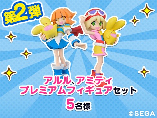 『ぷよぷよ!!クエスト』公式twitterアカウントをフォローし、該当ツイートをRTしてくださった方の中から抽選で5名様に「アルル・アミティ プレミアムフィギュアセット」をプレゼント!
