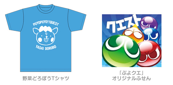 また、当日お越しいただいたみなさんには、「野菜どろぼうTシャツ」「ぷよぷよ!!クエストオリジナル付箋」をプレゼント!
