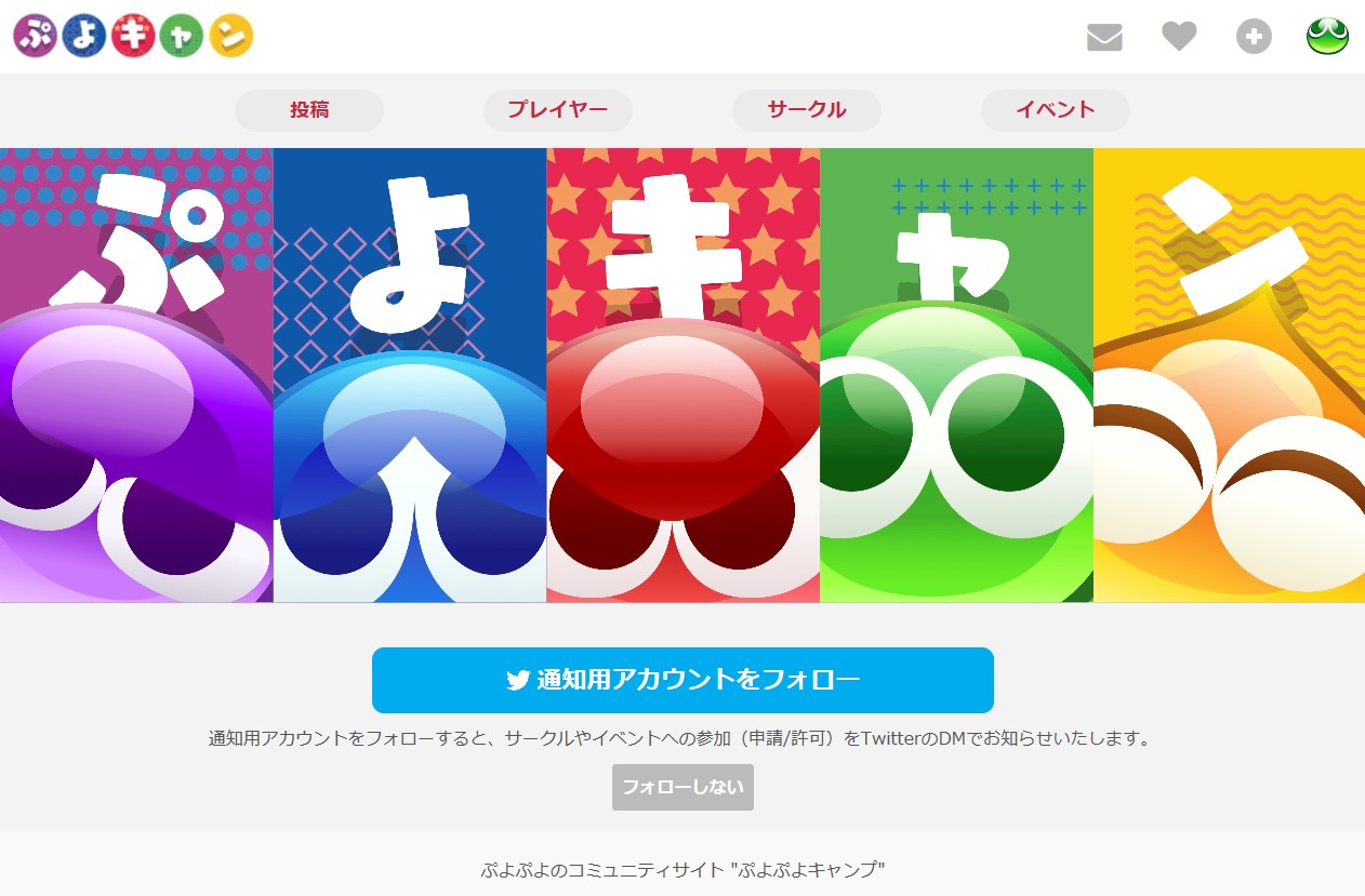 | 「ぷよぷよ」コミュニティサイト『ぷよぷよキャンプ』 ※Twitterアカウントでプレイヤーの登録をいただけます |