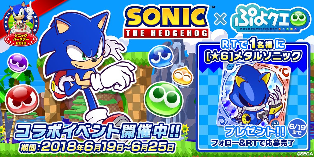 2018年6月19日(火)15:00より、パズルRPG『ぷよぷよ!!クエスト』(以下 ぷよクエ)にて、7月に最新作『ソニックマニア・プラス』の発売をひかえる「ソニック」シリーズとの復刻版コラボレーションイベントを開催中です。