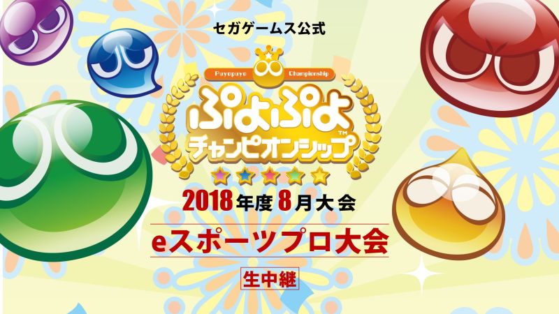 | 日時 | 2018年8月18日(土)16:00~ ○16:00~ プロ・一般選手混合大会:セガゲームス公式「ぷよぷよカップ」2018年度8月大会 決勝トーナメント ○19:00~ プロ大会:セガゲームス公式「ぷよぷよチャンピオンシップ」2018年度8月大会 |