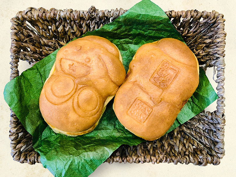 ▲みどりぷよの上に、カーバンクルが乗っている姿を焼き菓子で表現した「ぷよぷよ焼き」。後ろ姿には、「ぷよぷよ」「かーばんくる」の刻印入り。