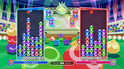 『ぷよぷよeスポーツ』は、日本eスポーツ連合(以下、JeSU)公認タイトルである「ぷよぷよ」シリーズをより多くの方に、よりお求めやすい価格でお楽しみ頂けるダウンロード販売専用ゲームです。