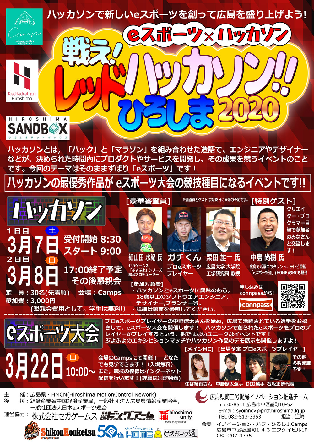 →広島県「イノベーションイベント情報」 eスポーツ×ハッカソン融合イベント『戦え!レッドハッカソン!!ひろしま2020』