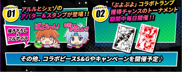 コラボ期間中、アバターや『m HOLD’EM』 オリジナルの描き下ろし&フルボイスのスタンプが獲得出来る!また「ぷよぷよ」とのコラボトランプが手に入るトーナメントを毎日開催!