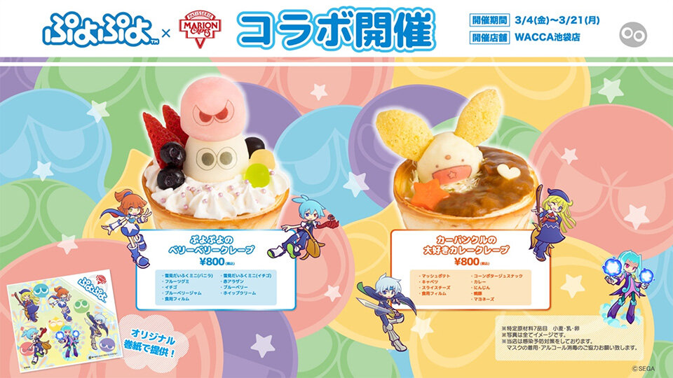 ぷよぷよとのコラボクレープが「マリオンクレープWACCA池袋店」で販売中!