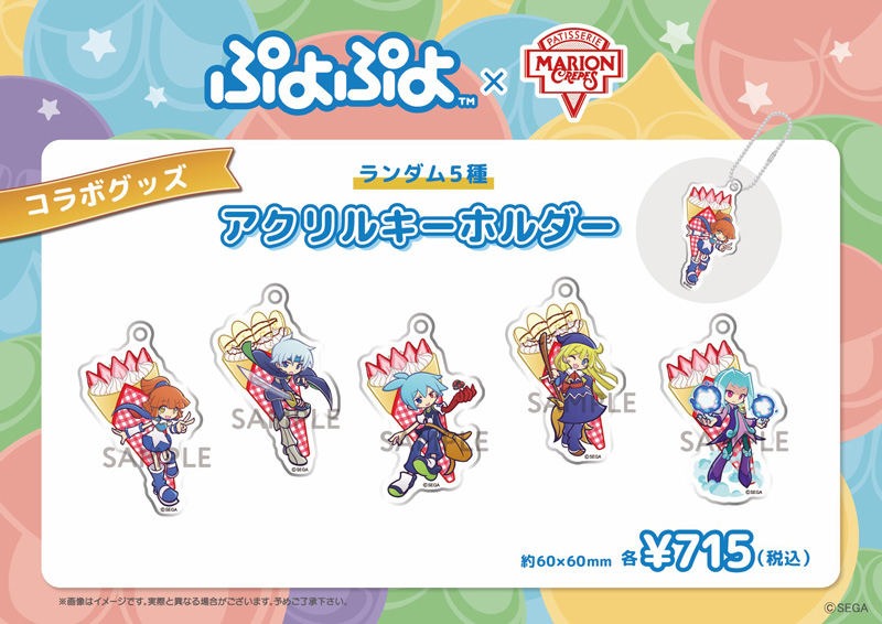開催期間中は、『ぷよぷよ』コラボクレープ2種と、クレープコラボアクリルキーホルダー(ランダム全5種)を販売いたします。